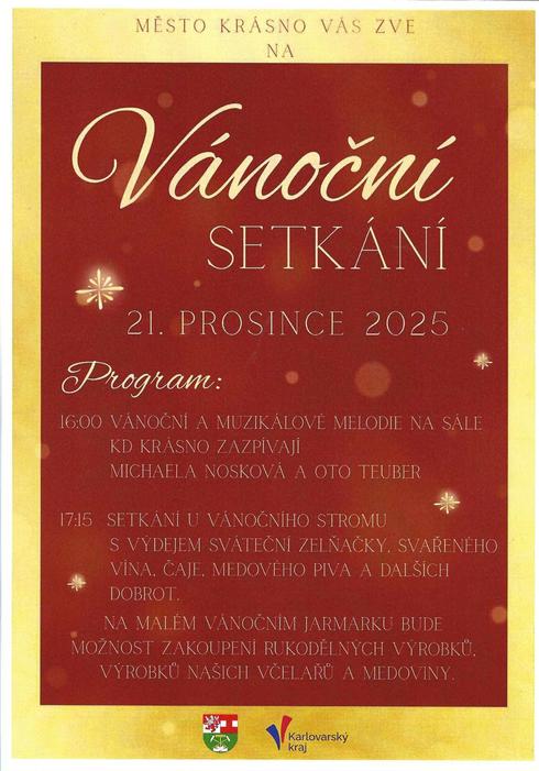 Město Krásno Vás zve v neděli 21.prosince 2025 od 16:00 hodin do Kulturního domu Krásno na VÁNOČNÍ SETKÁNÍ na kterém zazpívají MICHAELA NOSKOVÁ a OTO TEUBER