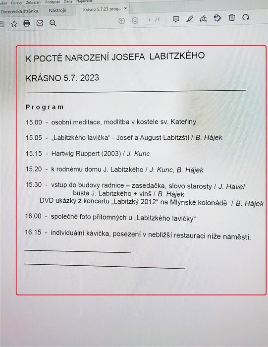 Úvod > Město > Fotogalerie > Setkání dne 5. 7. v Krásně, v den narození Josefa Labitzkého