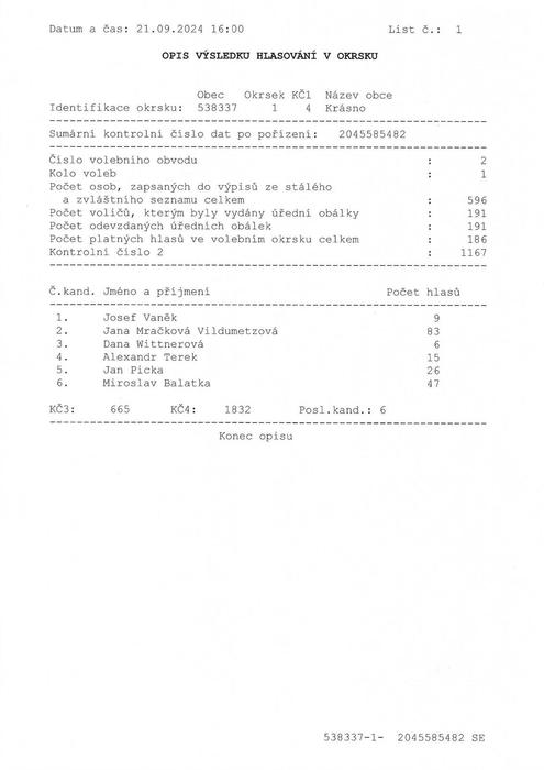 Úvod > Informace > Radnice informuje > Výsledky voleb v Krásně do zastupitelstva Karlovarského kraje a do Senátu Parlamentu ČR